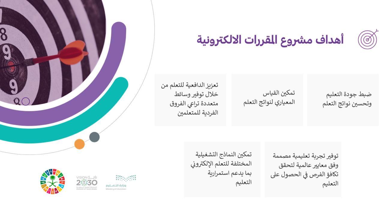 حيثُ هدفت الخطة إلى التعريف بالمقررات الإلكترونية وآلية تفعيلها في منصة مدرستي، واستعراض أهداف مشروع المقررات الإلكترونية والمعايير المعتمد عليها في تصميمها، وتقديم شرح العناصر التعليمية للمقررات الإلكترونية، كذلك التعريف بتقرير قياس التقدم للطالب في المقررات الإلكترونية، والكشف عن أنماط تدريس المقررات الإلكترونية ، كما قُدم عرض لتجربة مستخدم في نظام المقررات الإلكترونية ، وتفعيل المقررات الإلكترونية من (مقرراتي) في منصة مدرستي ، كذلك تفعيل المقررات الإلكترونية من (الحصص الإضافية) ، واستعراض أدلة المقررات الإلكترونية .