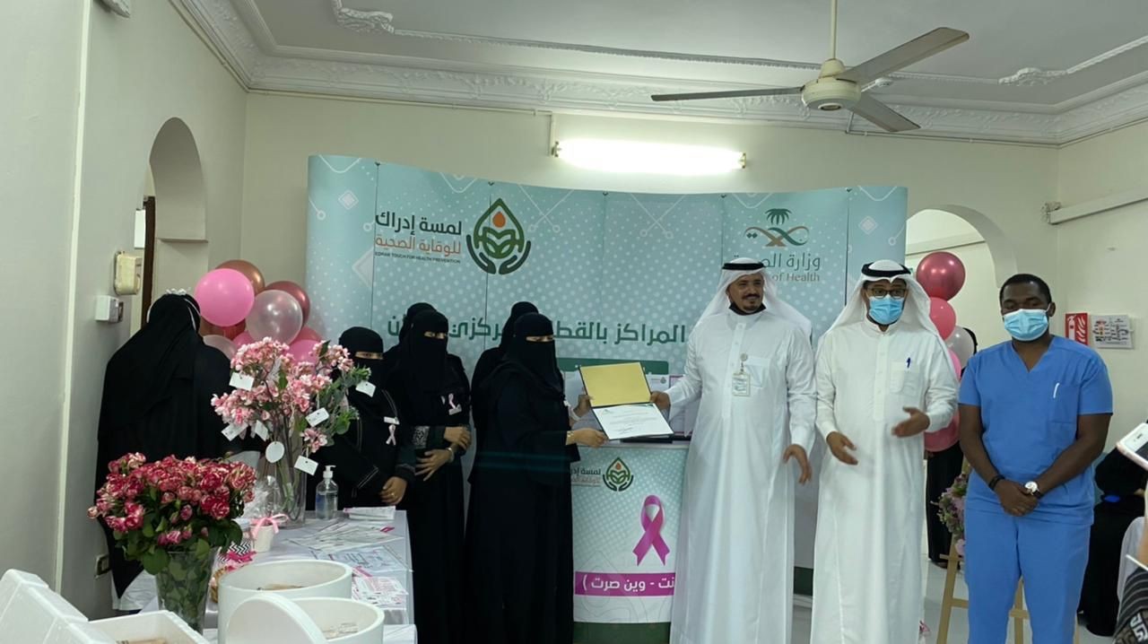إدارة شؤون المراكز الصحية بالتعاون مع جمعية لمسة إدراك للوقاية تفعل الركن التوعوي عن سرطان الثدي