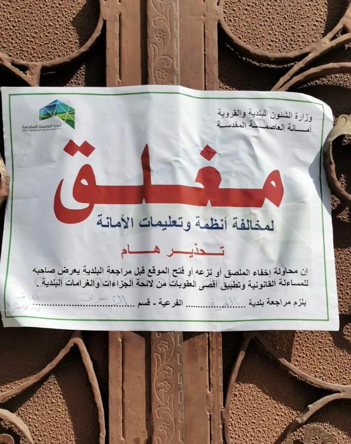 وأكَّدت أمانة العاصمة المقدسة تكثيف الحملات وتشديد الرقابة والمتابعة الميدانية على الاحواش والمعامل وقاعات واستراحات المناسبات والأفراح، ومكافحة الباعة الجائلين والتأكد من نظامية مزاولة الأنشطة، وحرصها للتصدي لجميع المخالفات، داعية الجميع للإبلاغ عن أي ملاحظات وشكاوى عبر الاتصال بمركز البلاغات الموحد 940 وقنوات الأمانة الرسمية.