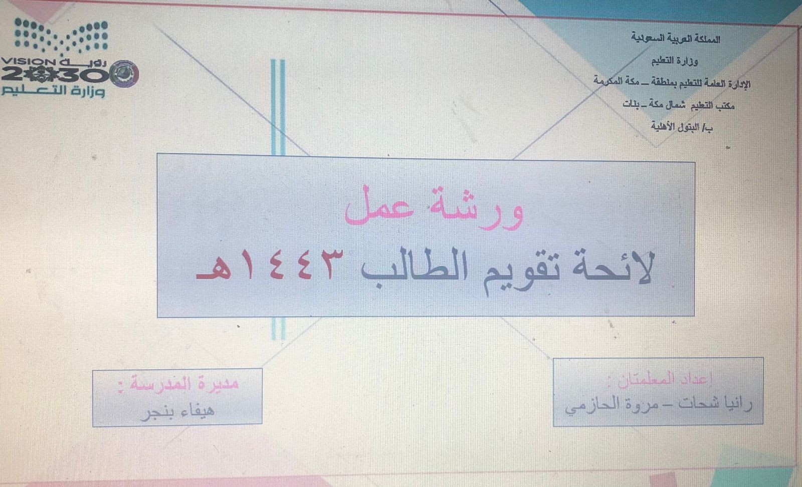 لائحة تقويم الطالب 1443هـ ورشة تدريبية بابتدائية البتول الأهلية بمكة