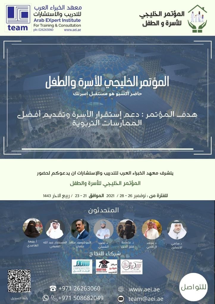 سيقام المؤتمر في نوفمبر 26-28 /2021م الموافق 21-23 ربيع الآخر للعام الهجري الحالي، الذي يهدف لدعم إستقرار الأسرة وتقديم أفضل الممارسات التربوية.
