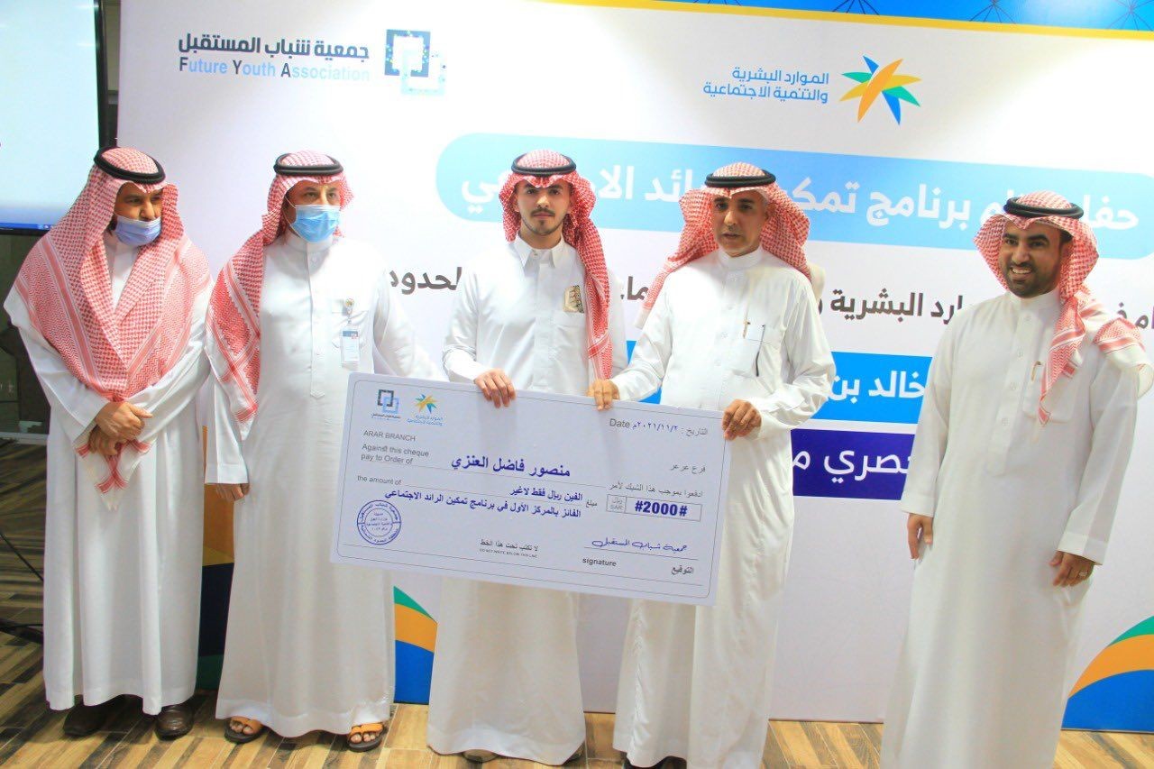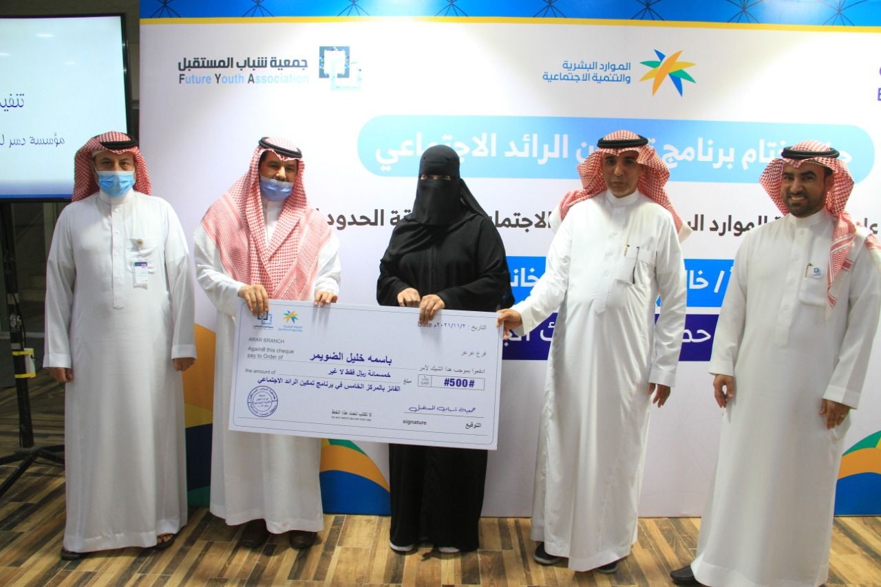 برعاية مدير عام فرع وزارة الموارد البشرية والتنمية الاجتماعية بمنطقة الحدود الشمالية بالنيابة أ/ مقبل بن مطيلق العنزي اختتمت اليوم فعاليات برنامج تمكين الرائد الاجتماعي بجمعية شباب المستقبل بحضور النائب الأول للرئيس التنفيذي ورئيس مجموعة الشريعة والمسؤولية الاجتماعية