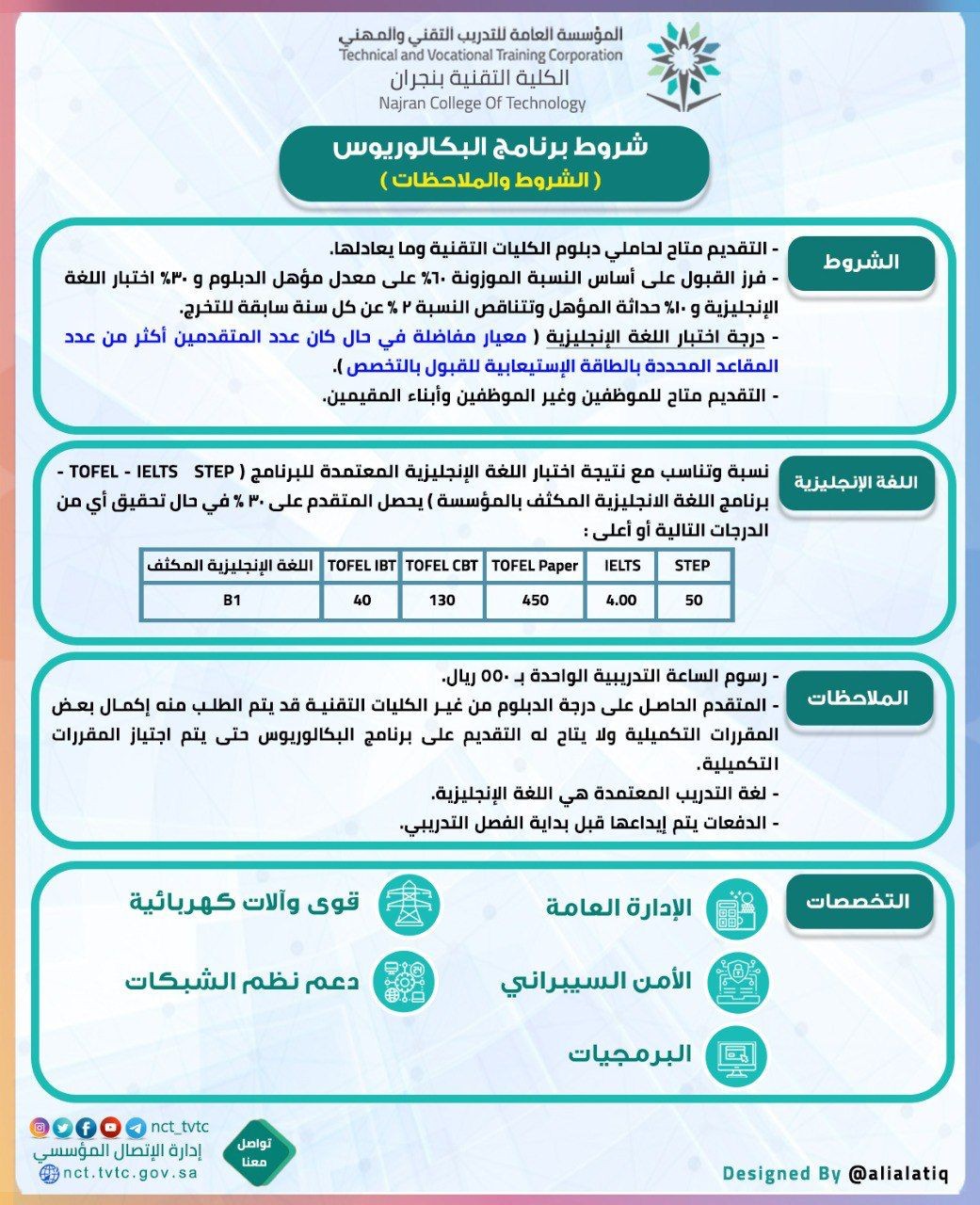 تقنية نجران تبدأ القبول لبرنامج البكالوريوس المسائي