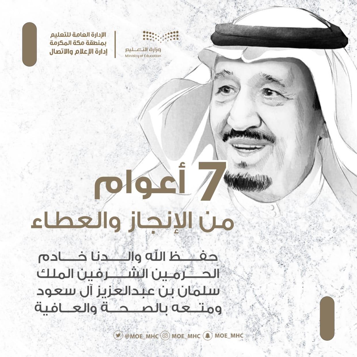 سبع سنوات سابق فيها الوطن المستقبل وتجاوز فيها جائحة كورونا بنجاح لم يشهد له العالم مثيل. ونحن الآن في ذكرى بيعةالملك سلمان حيثُ المملكة تعيش بأمن وأمان واستقرار وتقدم مذهل في كافة المجالات.