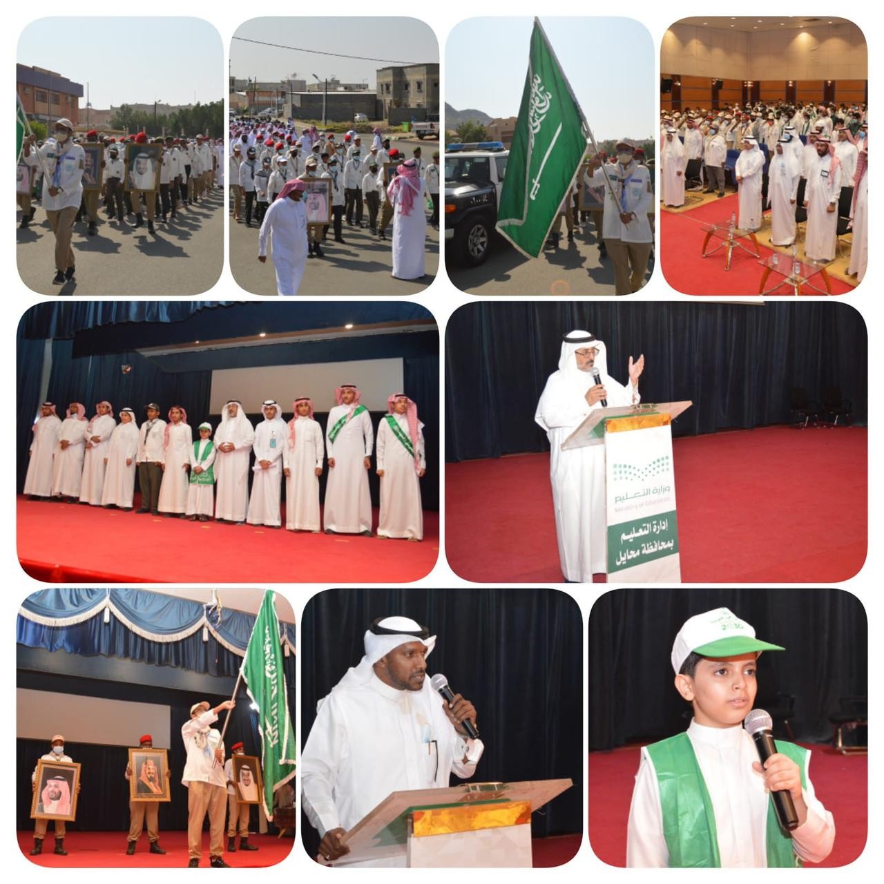 وبدأ الاحتفاء بمسيرة "حب ووفاء" بمشاركة مدير التعليم الأستاذ منصور بن عبدالله آل شريم والمساعدين ورؤساء الأقسام ومديري مكاتب التعليم ومنسوبي الإدارة , وعدد كبير من الطلاب والكشافة.
