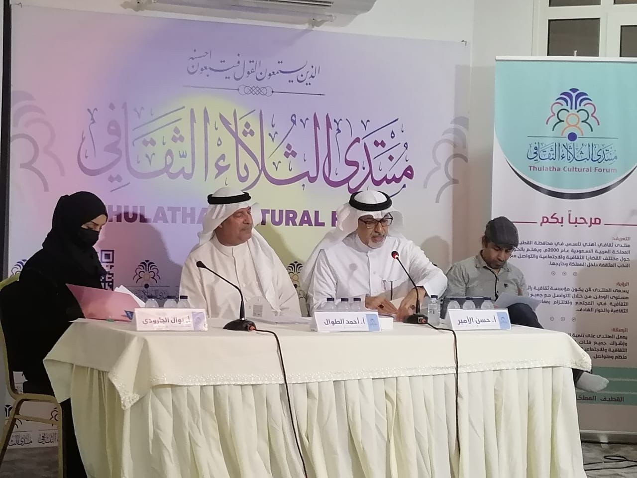 وجاءت هذه الأمسية الشعرية ضمن جهود المنتدى في إبراز الجوانب الثقافية وخاصة الأدبية منها واستحضارها وخاصة تلك المتعلقة بالموروث الشعبي في المنطقة، حيث نظم ندو سابقة تحت عنوان "حكاية الموال". ويمتاز هؤلاء الشعراء بأعمالهم الإبداعية في مجال شعر الموال الذين سعوا للمحافظة عليه واصدر بعضهم دواوين شعرية فيه، فالشاعرة نوال الجارودي ألفت ديوان "زهيريات أنثى"، وحصلت على المركز الأول في النقد الأدبي من كلية الآداب بالدمام في ملتقى (سوق المربد)، والشاعر أحمد الطوال من كتاب شعر الموال ونشر العديد من القصائد، أما الشاعر حسن الأمير فقد صدر له ديوانان شعريان "حناجر العشق"، و "بين الماء والتراب" ومثّل المملكة كمحكم في مسابقة (نهّام الخليج) التي اقيمت في دوله قطر.