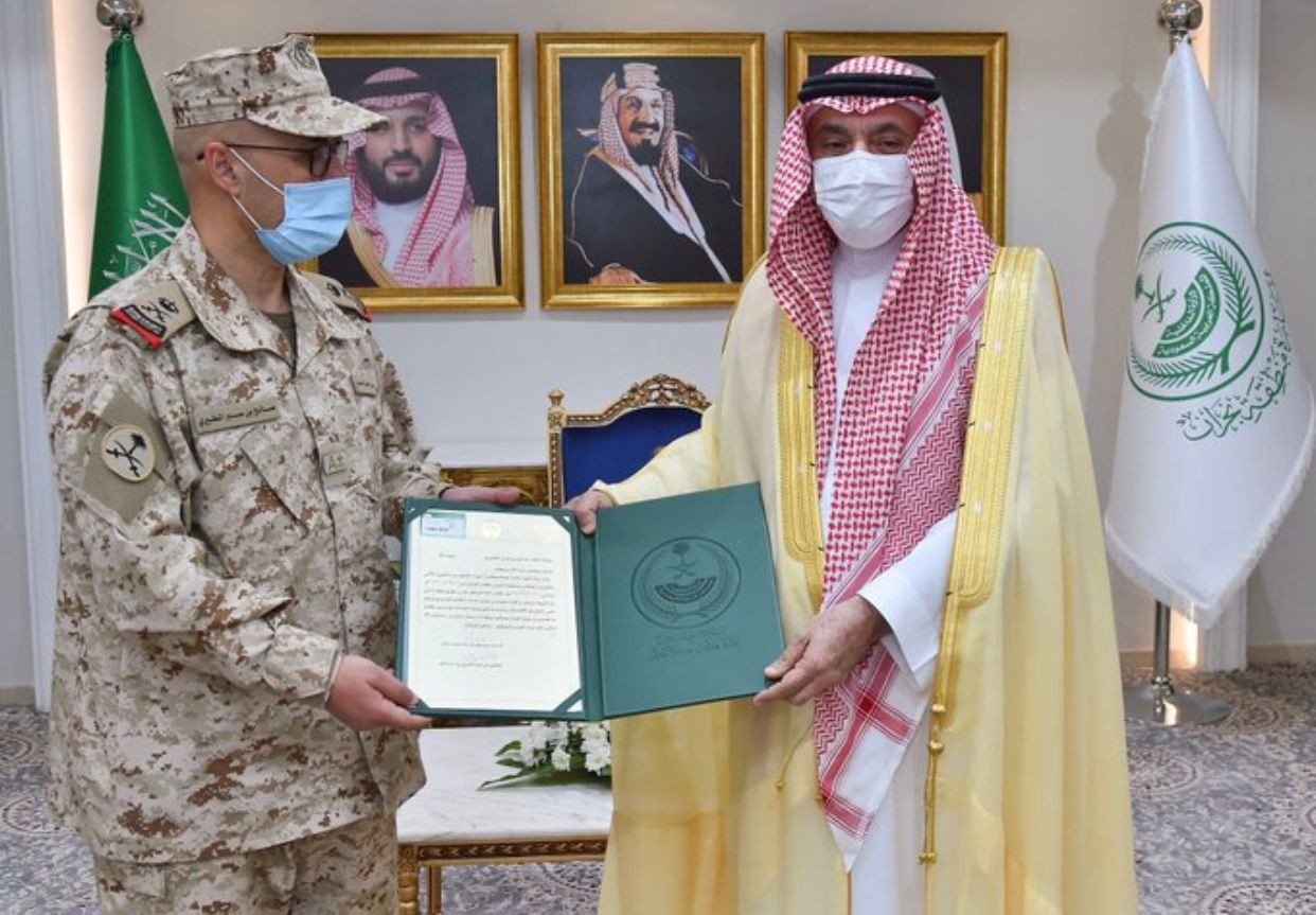 سمو أمير نجران يستقبل قائد لواء الملك عبدالعزيز الآلي بالحرس الوطني بالمنطقة بمناسبة انتهاء فترة عمله