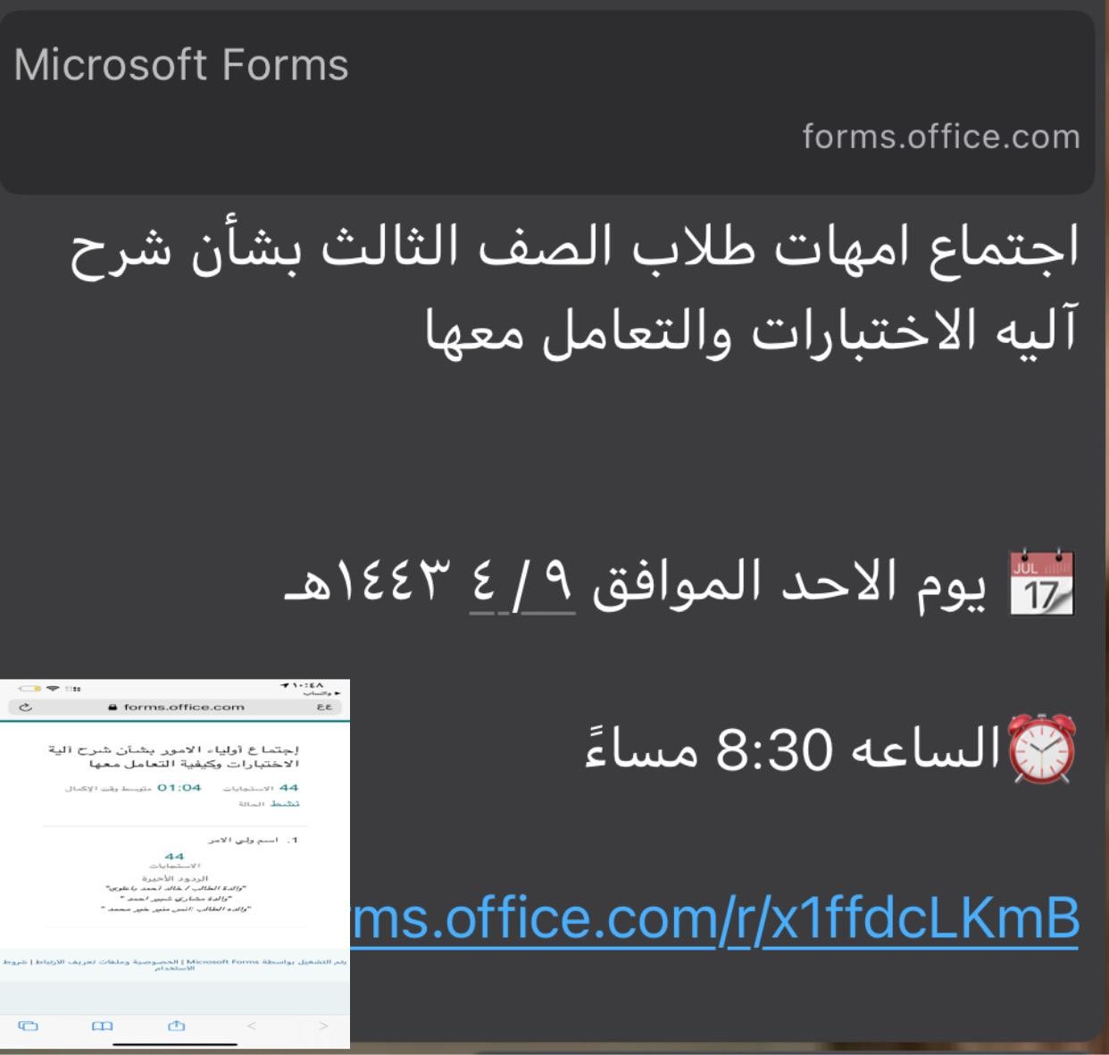 فيما تضمن الاجتماع موعد الاختبارات، والتأكيد على الأمهات بالتأكد من دخول أبنائهم من حساباتهم الخاصة.