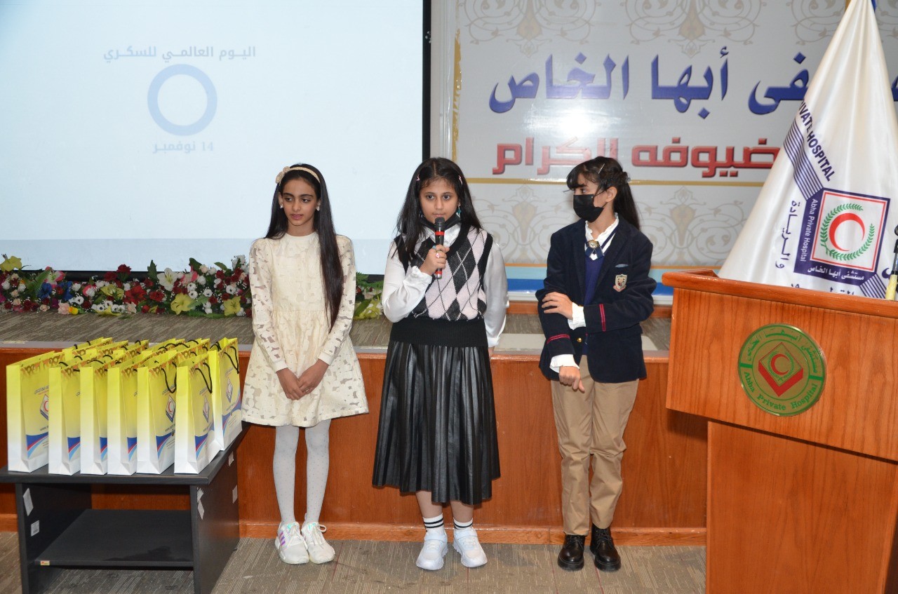 وقد شاركت الطفلة في فعاليات مستشفى أبها الخاص في إطار اليوم العالمي للسكري التي تم تنفيذها , والتي استهلت بكلمة للمدير التنفيذي للمستشفى واستشاري أمراض السكري والغدد الدكتور خالد الثميري أشار فيها إلى أن اليوم العالمي للسكري هو أحد المناسبات العالمية التي أطلقها الإتحاد الدولي للسكري في عام 1991م ، وهو أكبر حملة توعوية لمرضى داء السكري ، ويتم الاحتفال بهذا اليوم في اليوم 14 من شهر نوفمبر من كل عام ، ويتزامن هذا اليوم مع الذكرى السنوية لاكتشاف الأنسولين عام 1922م ، حيث يهدف اليوم العالمي للسكري إلى رفع مستوى الوعي حول تأثير داء السكري على المجتمع ، وتشجيع التشخيص المبكر، والوقاية من داء السكري وتأخير ظهوره.