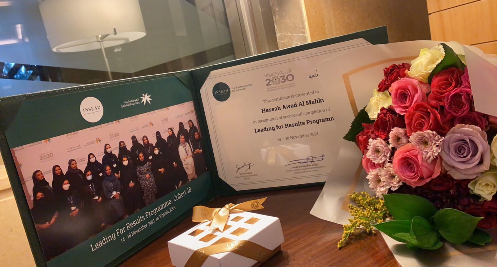 وقد اجتازت المالكي – مديرة مكتب المساعدة للشؤون التعليمية بالطائف- برنامج قيادات نسائية, الذي قدمته جامعة إنسياد الفرنسية, بعد اجتيازها عدد من المراحل ومتطلبات الترشيح بمتابعة الجامعة الفرنسية, ليكون آخرها التدريب المكثف, والاجتياز النهائي.