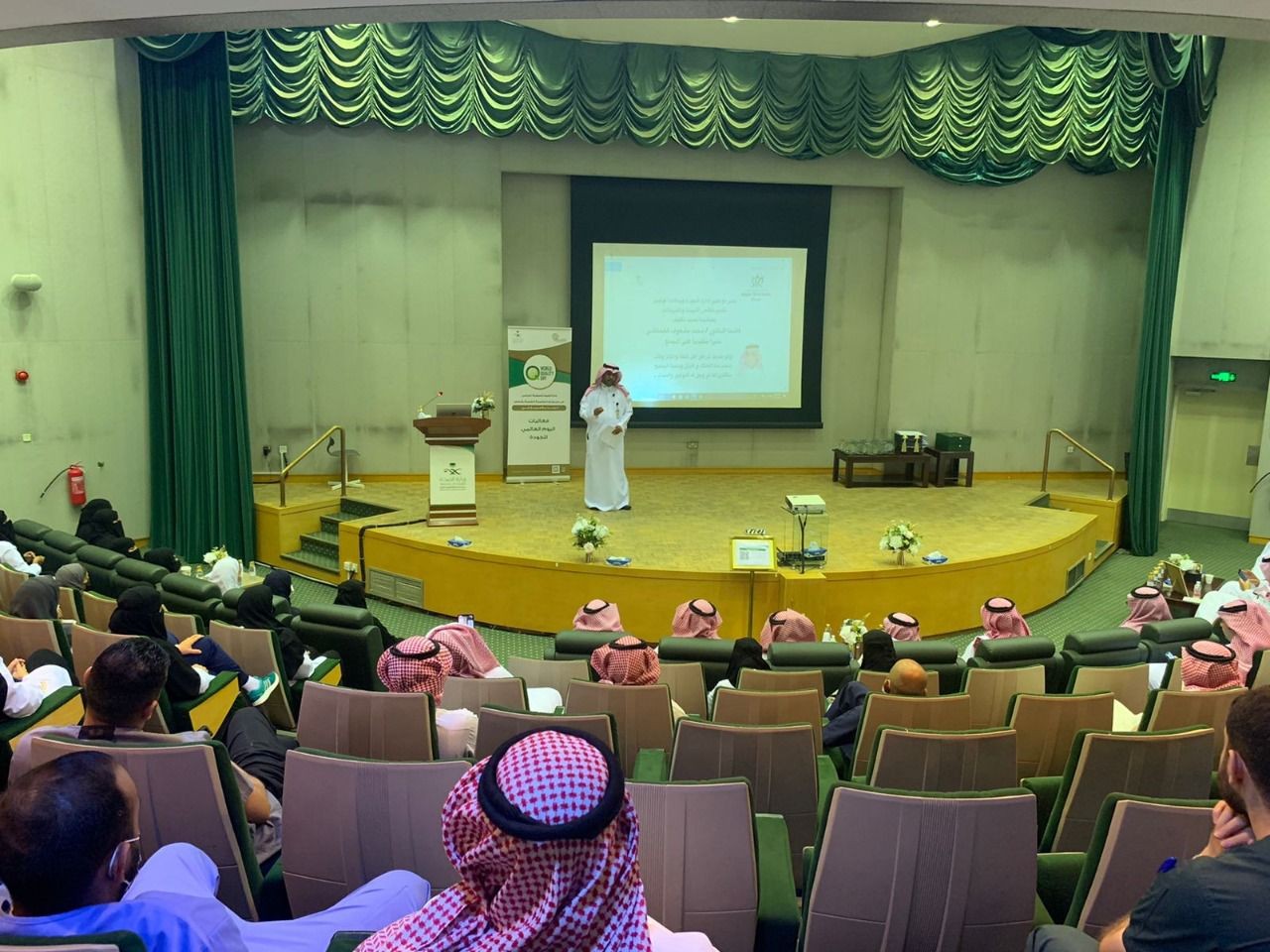 من جهته ذكر مدير إدارة الجودة وسلامة المرضى تركي بن فهد السريع أن احتفال المجمع بهذه المناسبة يأتي في إطار ترسيخ مفاهيم الجودة وإبراز أهميتها في التقييس والتغيير والمأمونية والانتاجية وأنها جزء لا يتجزأ من منظومة الاتقان والتحليل ودراسات التوسع والانكماش، والتأكيد على أن المجمع كمنظومة صحية متكاملة الخدمات والتوجهات والأهداف لم يكن ليصل إلى ما وصل إليه لولا توفيق الله ثم الالتزام الصارم بالمعايير والمؤشرات وأدوات الجودة الأخرى من إجراءات وسياسات ونحوها.