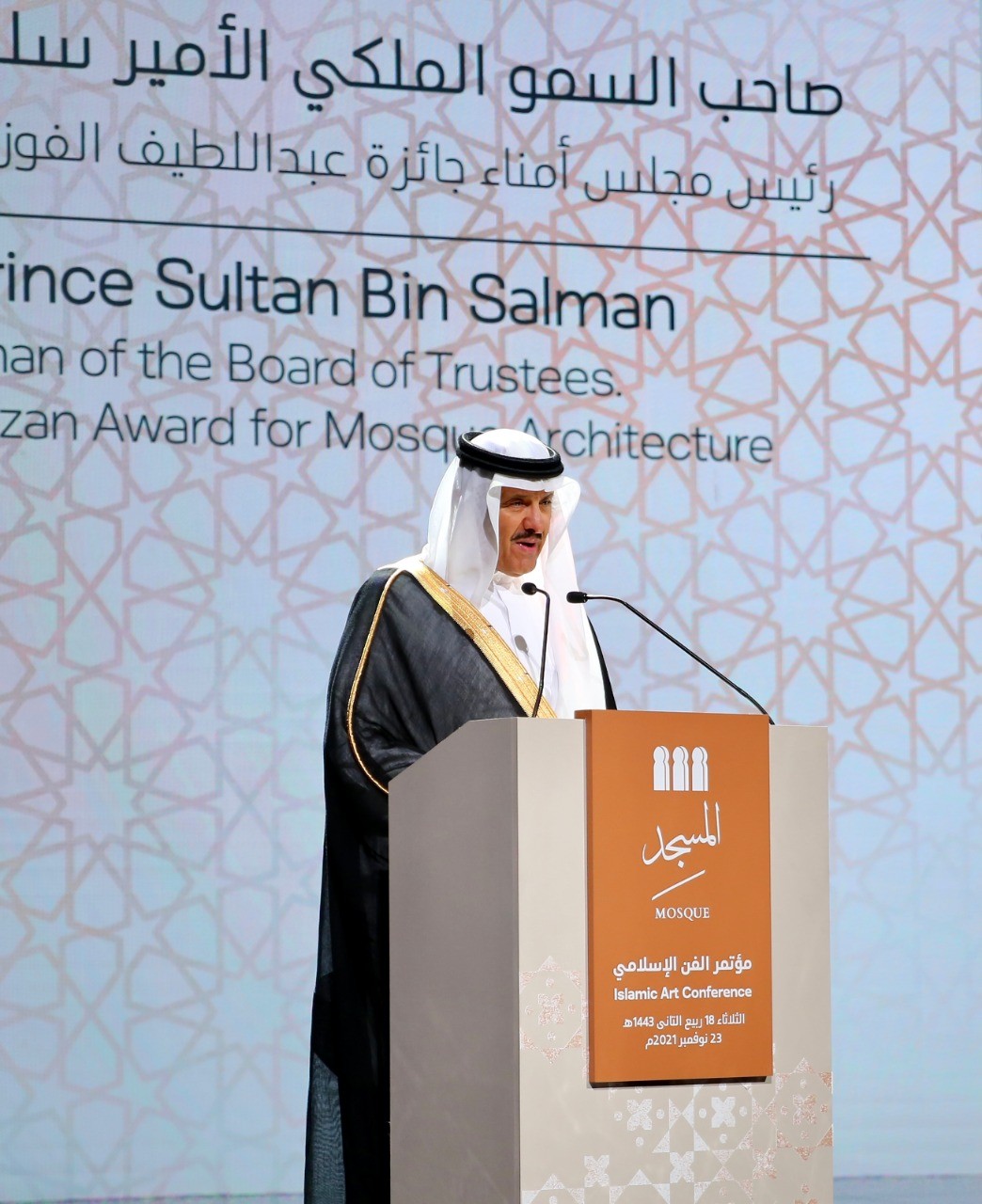 برعاية كريمة من صاحب السمو الملكي الأمير سعود بن نايف بن عبدالعزيز أمير المنطقة الشرقية، وبحضور صاحب السمو الملكي الأمير سلطان بن سلمان بن عبدالعزيز المستشار الخاص لخادم الحرمين الشريفين رئيس مجلس الأمناء لجائزة عبد اللطيف الفوزان لعمارة المساجد، اليوم، انطلاق أعمال المؤتمر العالمي للفن الإسلامي، الذي ينظمه مركز الملك عبد العزيز الثقافي العالمي "إثراء" بالتعاون مع جائزة عبد اللطيف الفوزان لعمارة المساجد، على مدى 3 أيام، تحت عنوان "المسجد.. إبداعُ القِطَع والشكل والوظيفة" في مقر المركز بالظهران، بحضور مسؤولين ومؤرخين ومختصين في الفن الإسلامي والعمارة المتعلقة بالمساجد، ومشاركة أكثر من 25 محاضرًا من المنطقة وضيوف دوليين.