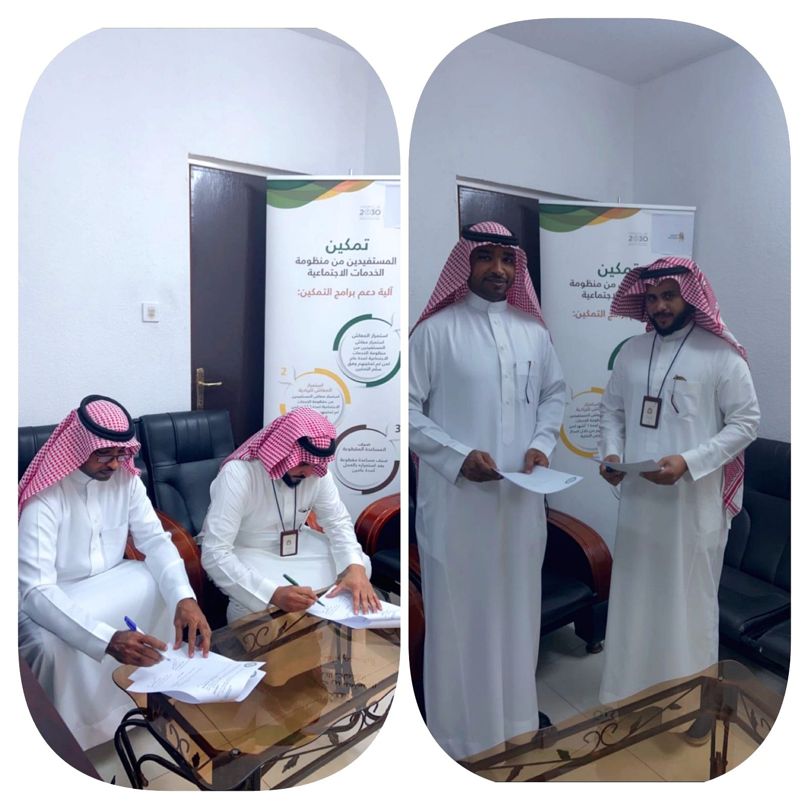 قام رئيس قسم التمكين بمكتب الضمان الاجتماعي بالقحمة الأستاذ أحمد شيخين صباح اليوم الثلاثاء الموافق 25-4-1443 بتوقيع عقد شراكة مع لجنة التنمية الاجتماعية الأهلية بالقحمة ويمثلها رئيس المجلس الأستاذ زايد عبده أبو هداش وذلك حسب توجيهات مدير مكتب الضمان بالقحمة.