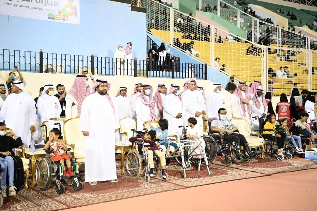 رعى صاحب السمو الملكي الامير محمد بن عبدالعزيز بن محمد بن عبدالعزيز نائب أمير منطقة جازان مساء اليوم ، فعاليات اليوم العالمي لذوي الاعاقة التي نفذها مركز جمعية الأطفال ذوي الاعاقة بجازان ، بمشاركة عدد من الجهات ، وذلك باستاد مدينة الملك فيصل الرياضيةً بمدينة جيزان .