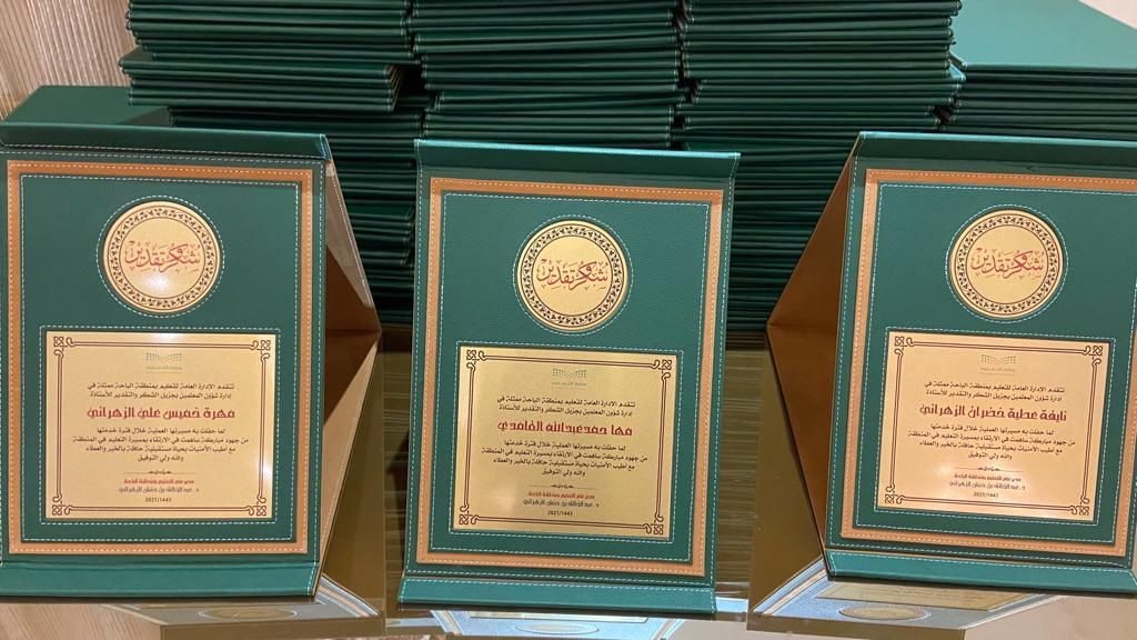 نظمت الإدارة العامة للتعليم بالمنطقة ممثلة في إدارة شؤون المعلمين مساء الجمعة 6 / 5 / 1443 هـ حفل تكريم المعلمات المتقاعدات والبالغ عددهن (133) معلمة متقاعدة ممن أنهين خدماتهن الوظيفية حتى تاريخ 4/12 /1442 وذلك بفندق المنتزه الوطني ببلجرشي بحضور مديرات مكاتب التعليم ومديرات الإدارات والمشرفات التربويات وعدد من مديرات المدارس.
