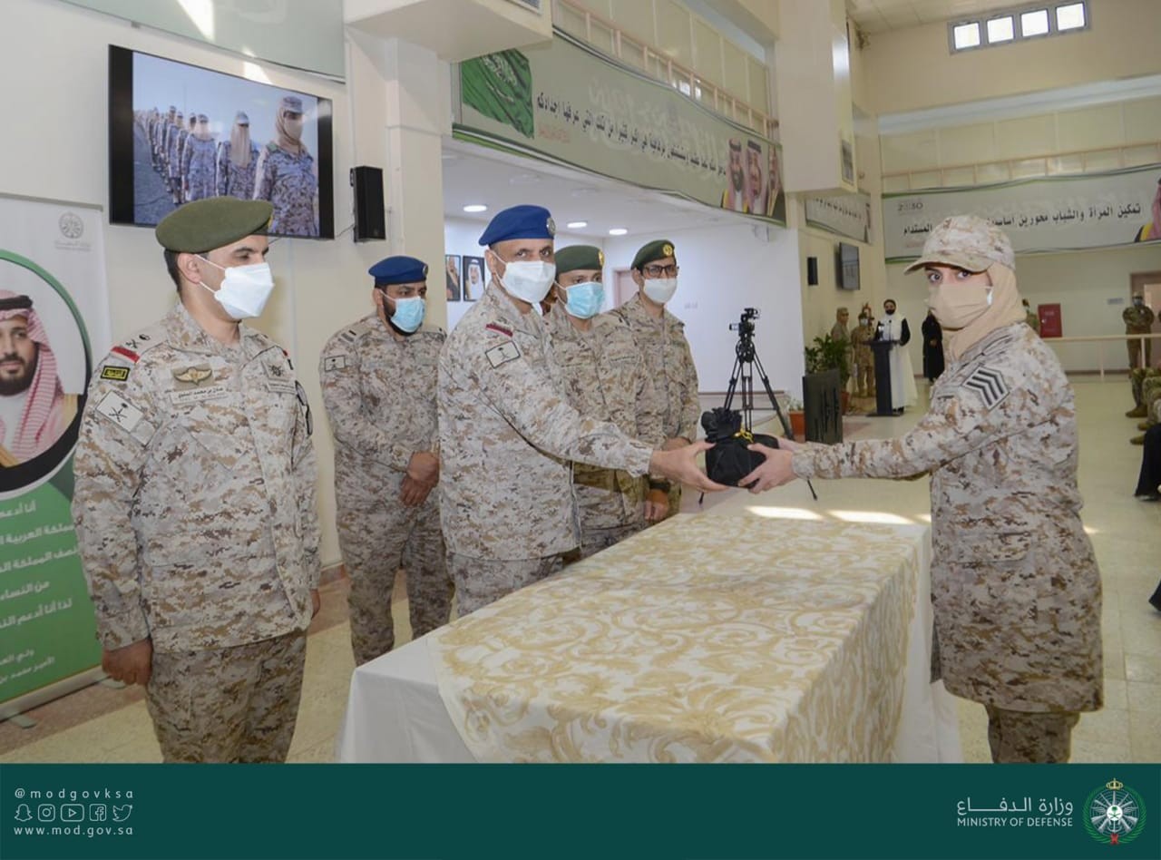 بحضور مدير الأركان المشتركة للقوات المسلحة اللواء الطيار الركن حامد بن رافع العمري اليوم حفل تخرج الكادر النسائي للقوات المسلحة لعدد من دورات المرحلة الثانية للعام التدريبي ١٤٤٣هـ.