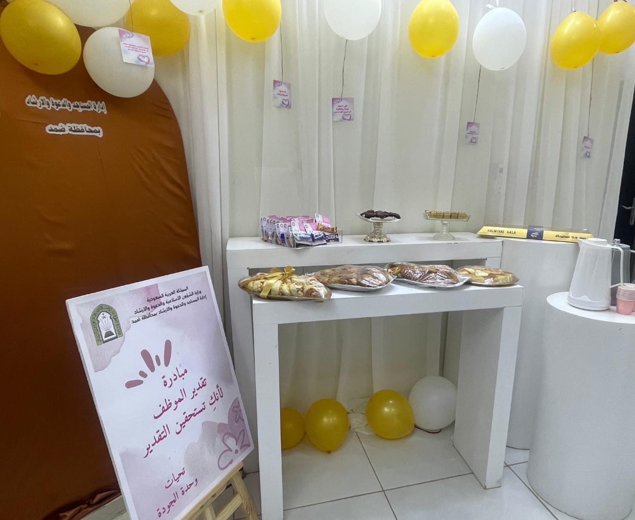 بالتزامن مع اليوم العالمي للشباب نظم فرع وزارة الشؤون الإسلامية في جازان ممثلا بإدارة المساجد بمحافظة ضمد مبادرة تقدير الموظف والتي جاءت بعنوان ( لأنك تستحق )