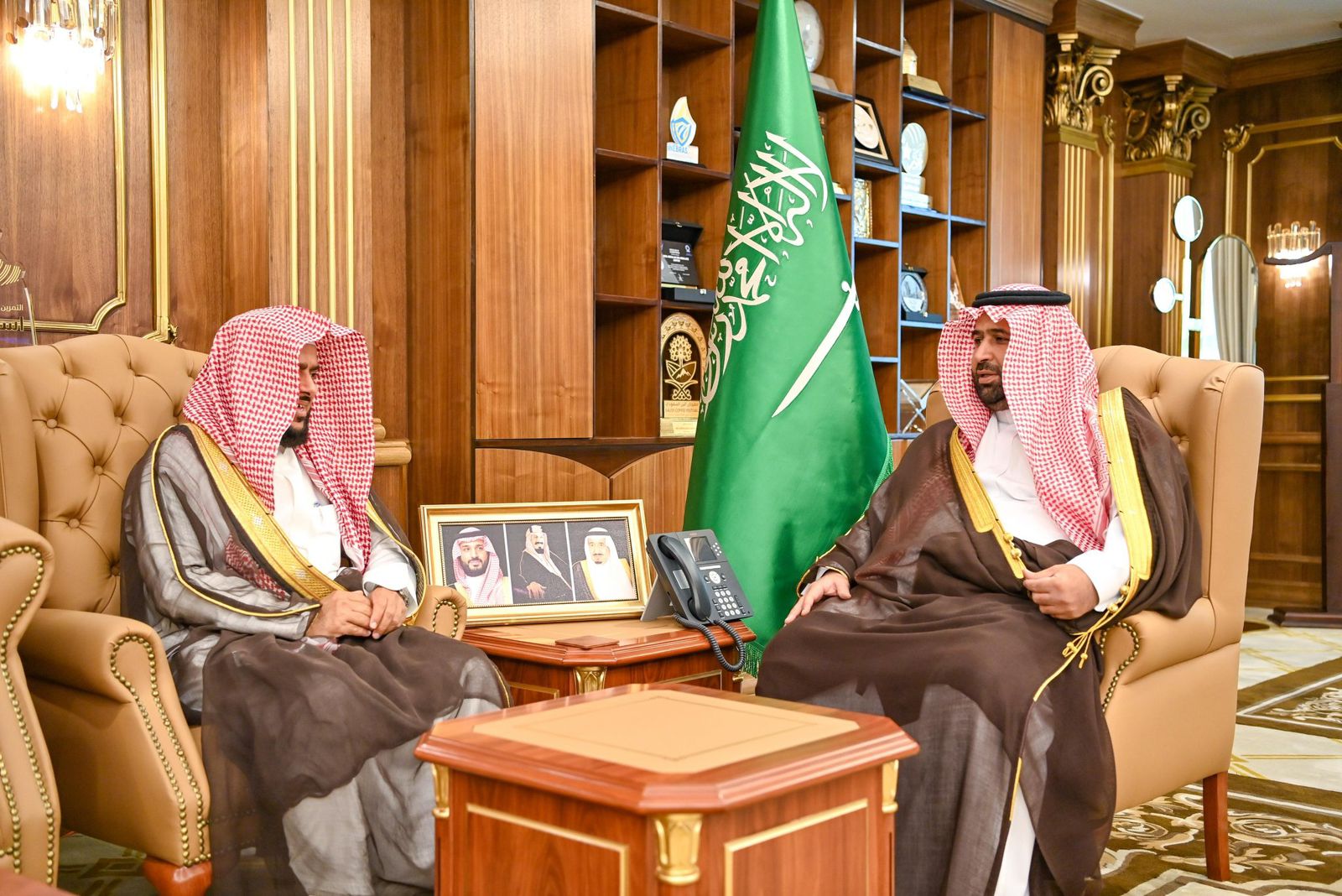 استقبل صاحب السمو الملكي الأمير محمد بن عبدالعزيز بن محمد بن عبدالعزيز أمير منطقة جازان، في مكتبه بالإمارة اليوم، فضيلة رئيس محكمة الاستئناف بالمنطقة الشيخ خالد معافا.