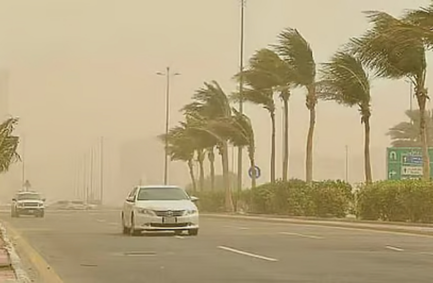توقع المركز الوطني للأرصاد في تقريره لحالة الطقس اليوم، استمرار تأثير الرياح النشطة المثيرة للأتربة والغبار على أجزاء من مناطق تبوك، المدينة المنورة ومكة المكرمة كذلك على الأجزاء الشرقية من منطقتي الباحة وعسير.