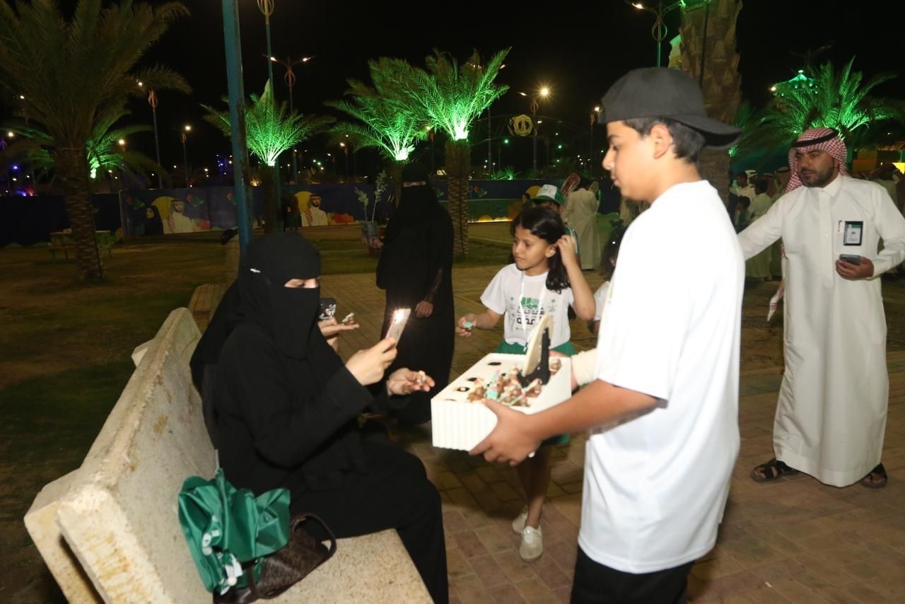بمناسبة اليوم الوطني 92 :شباب الإعلام بفرع هيئة الصحفيين السعوديين يوزع 150 شتلة متنوعة على المتواجدين بمنتزه النخيل بالجوف