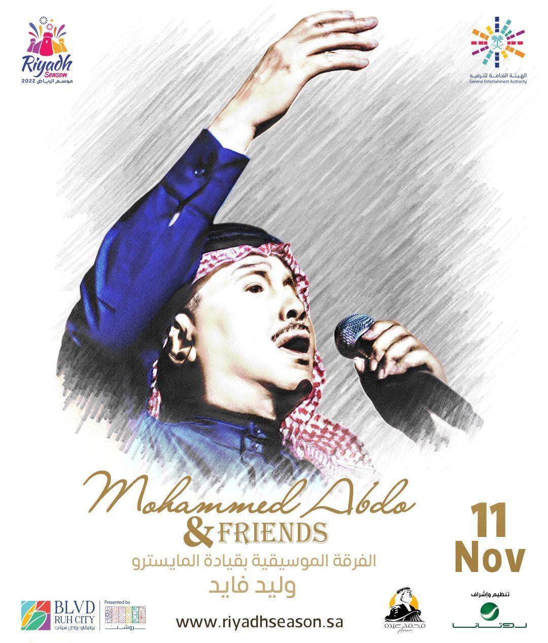في ليلة تتوشح ملامح الغناء والطرب، سيلتقي فنان العرب محمد عبده بأصدقائه في موسم الرياض 2022، يوم 11 نوفمبر الجاري، على مسرح محمد عبده أرينا بمنطقة بوليفارد رياض سيتي، في أمسية طربية استثنائية انتظرها الجمهور منذ وقت إعلانها، واستنفد تذاكرها خلال فترة قصيرة من طرحها.