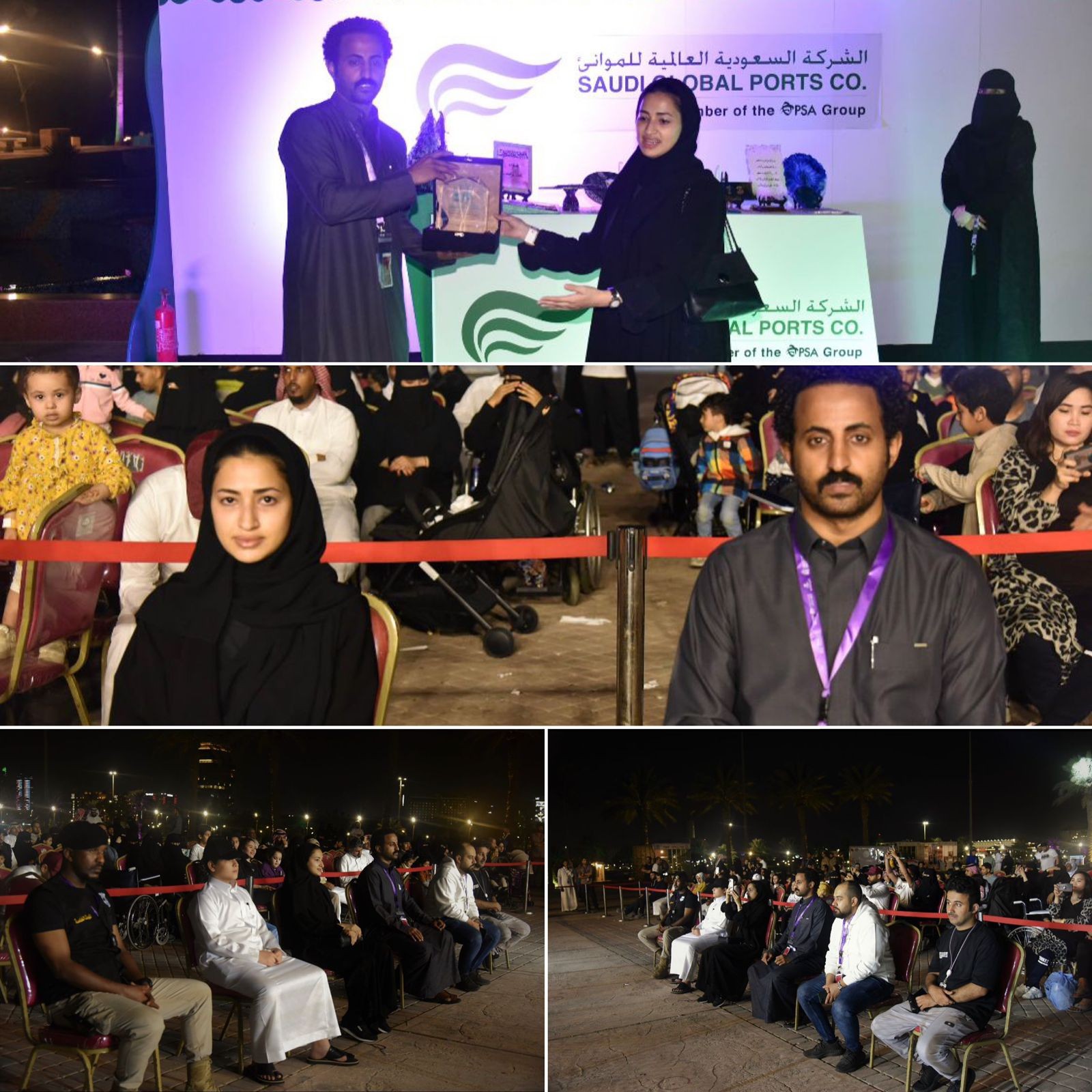 وفي ختام الزيارة قدمت إدارة المهرجان درع تكريماً للاستاذة هنادي على زيارتها وتشريفها للمهرجان وأعتزازاً بما قدمته الشركة السعودية العالمية للموانئ .