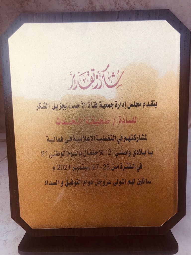 "فتاة الأحساء" تكرم صحيفة "الحدث" في ختام فعاليات اليوم الوطني 91
