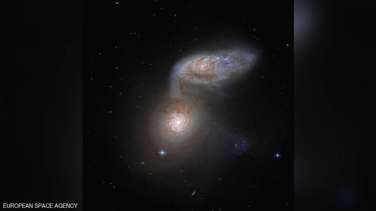 تمكن تلسكوب “هابل” الفضائي من التقاط صورة لاندماج مجرتين مع بعضهما بفعل قوة الجاذبية.
