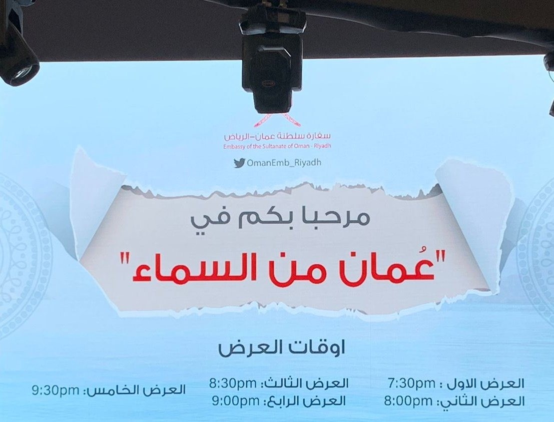 الفيديو يستعرض جمال السلطنة من الجنوب إلى الشمال عبر تقنيات التصوير الطائر، استعرضته السفارة العمانية في العديد من المناطق لاستقطاب شعب المملكة لزيارة السلطنة، وشهدت الأجواء توزيع الحلوى العمانية وسط رائحة اللبان العماني والموسيقى.