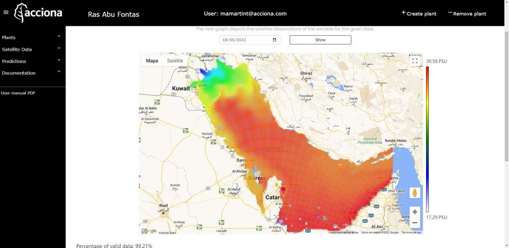 يستخدم القمر الصناعي أجهزة استشعار مختلفة بما في ذلك الرادار، وأجهزة الاستشعار بالأشعة تحت الحمراء، والتصوير عالي الدقة لتجميع البيانات. ويستخدم مركز تحكم أكسيونا لأعمال المياه، CECOA، بيانات الأقمار الصناعية لنمذجة مؤشر توقع التعكر، الذي يقارن صفاء المياه في الوقت الفعلي ببيانات الأوقيانوغرافيا والأرصاد الجوية التاريخية. وعندما يتجاوز المؤشر حدًا معينًا، فإنه يطلق تحذيرًا لموظفي التشغيل والصيانة للتحضير لتكاثر الطحالب أو أي مشكلة مماثلة.