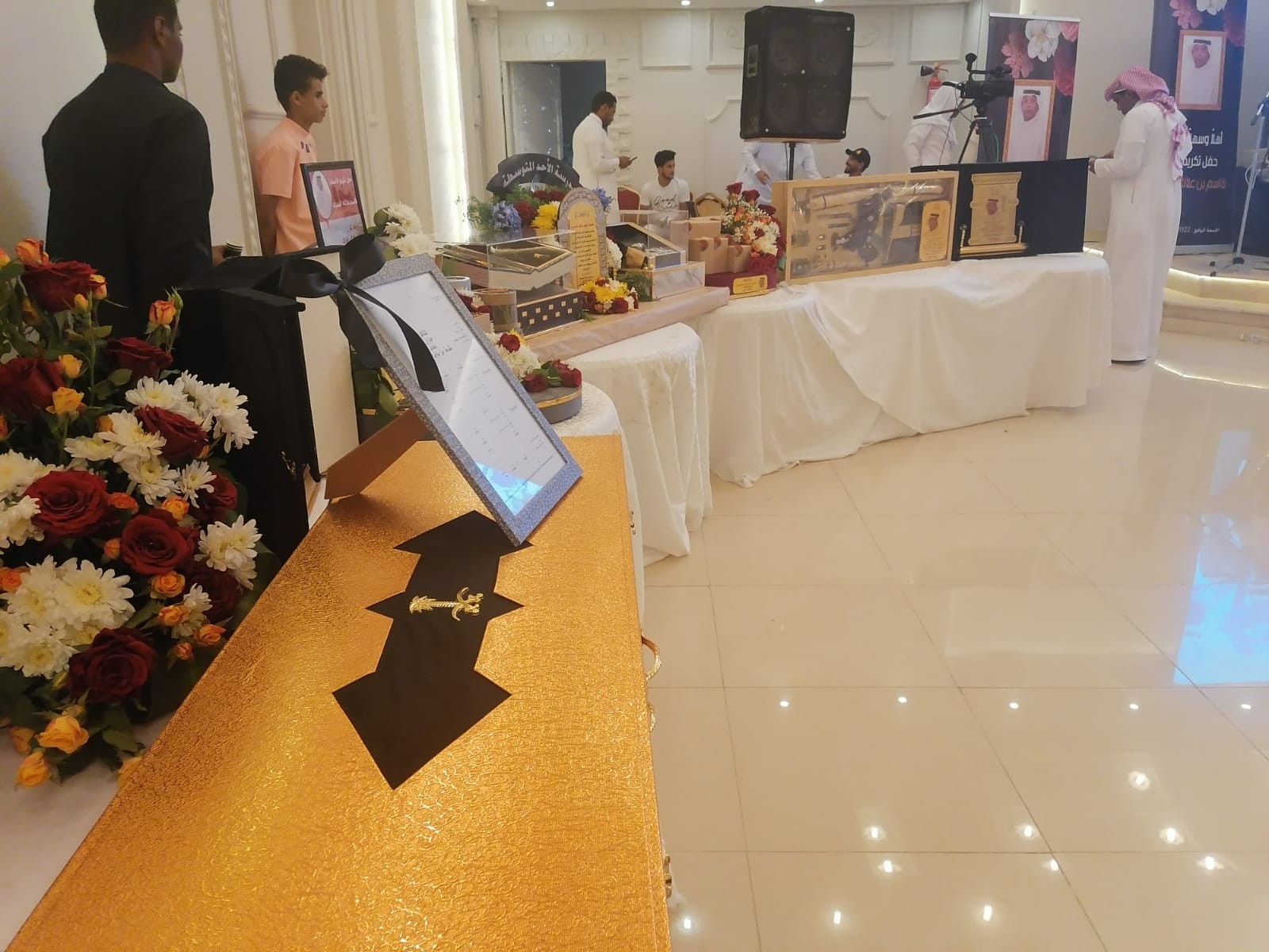 * تكريم المحتفى به بالدروع والهدايا التذكارية.