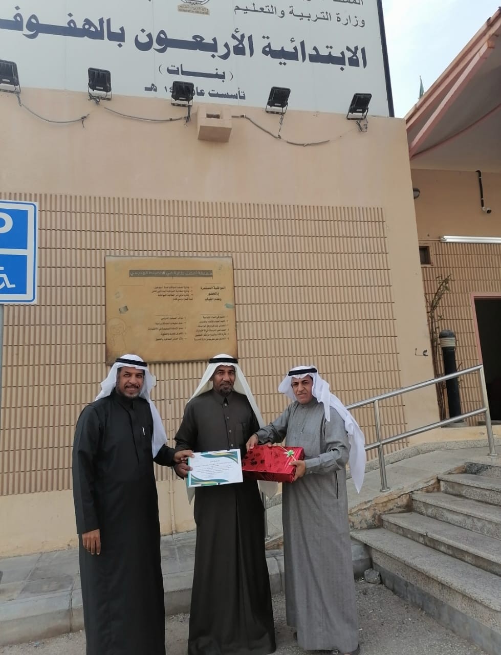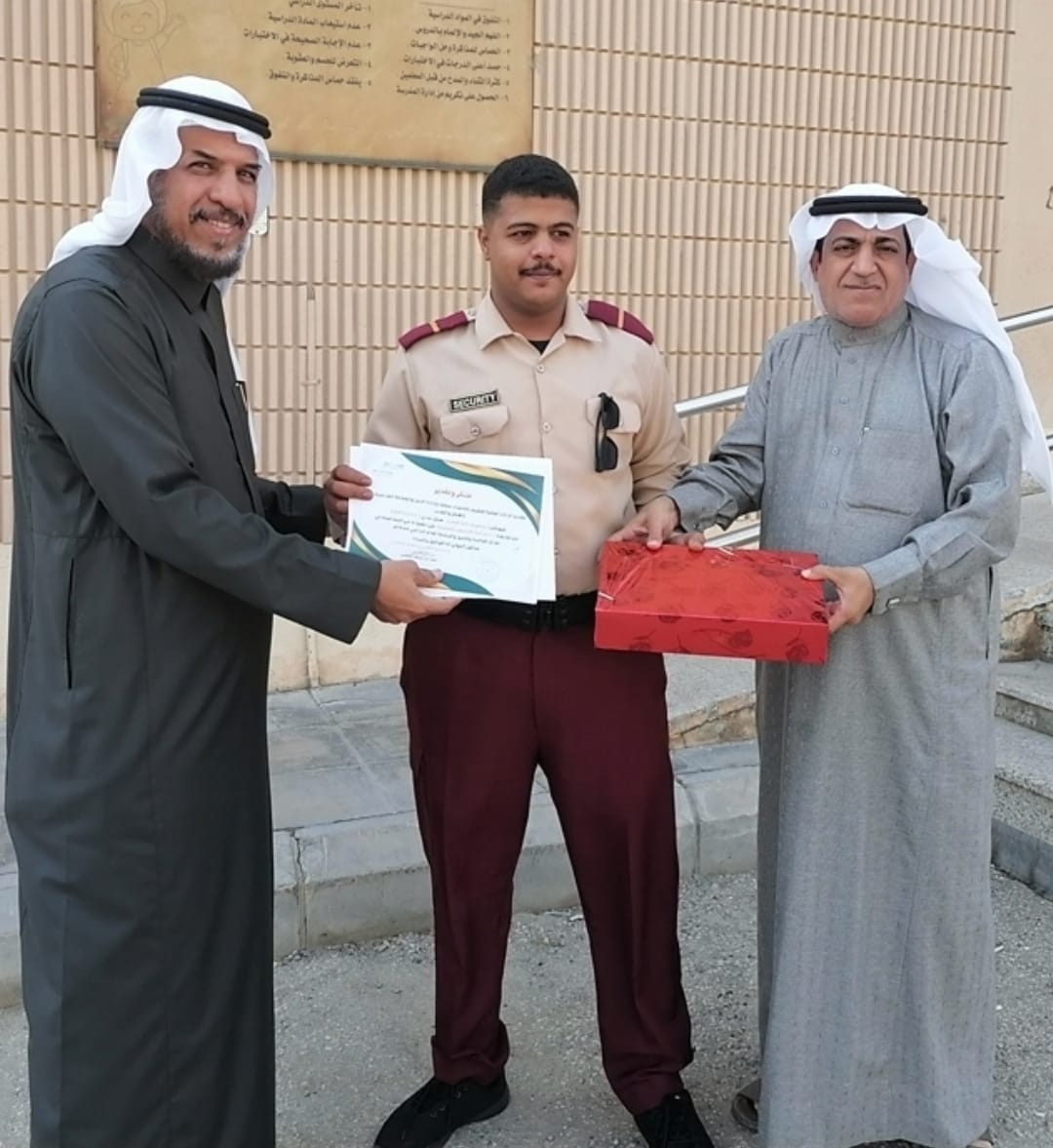 إيمانا وعرفانا بالدور الذي يقوم به حراس المدارس ورجال الأمن بها ، كرم ولي أمر الطالبة - تبارك الغزال  - حارس ورجل أمن مدرسة (الأربعون الابتدائية) بحي الملك فهد بالهفوف (( الداخل المحدود ))  الحارس - سامي