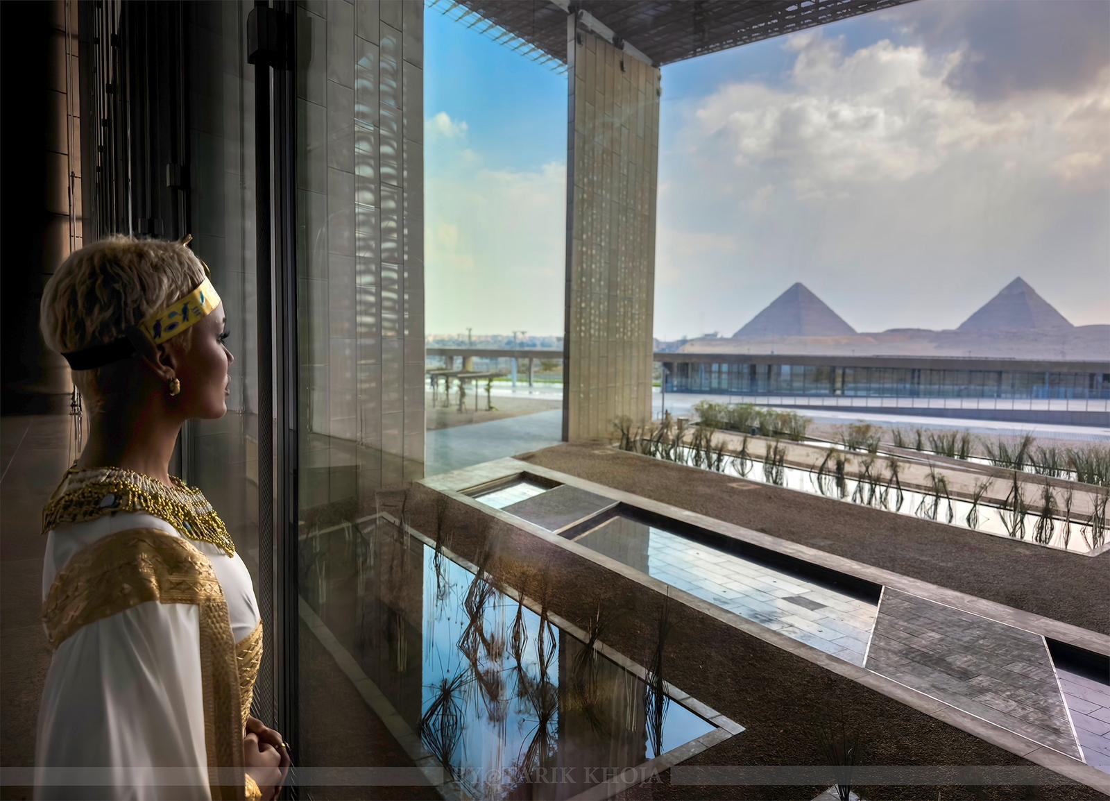 الصورة تحمل بعدًا رمزيًا، حيث تنقل إحساسًا بالتواصل بين الأجيال. السيدة تنظر نحو الأهرامات، وكأنها تنظر إلى الماضي البعيد، ولكن من داخل مبنى حديث. يمكن اعتبار هذه الصورة تجسيدًا للعلاقة بين التاريخ المصري العريق والتطور الحديث في مصر.