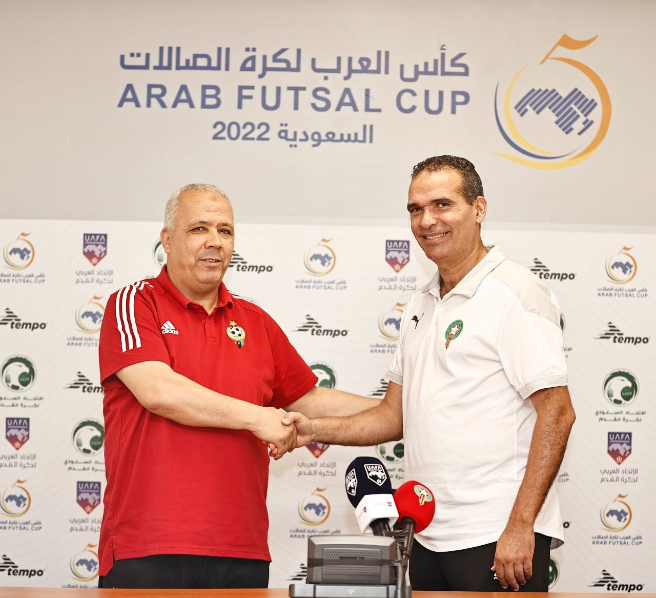 أجمع مدربو منتخبات المغرب والكويت وموريتانيا ومصر والعراق والسعودية وفلسطين وليبيا، على ضرورة التأهل لنصف نهائي بطولة كأس العرب لكرة قدم الصالات 2022، التي ينظمها الاتحاد العربي لكرة القدم وتقام في صالة وزارة الرياضة بمدينة الدمام في المملكة العربية السعودية، خلال الفترة من 20 إلى 28 يونيو الحالي.