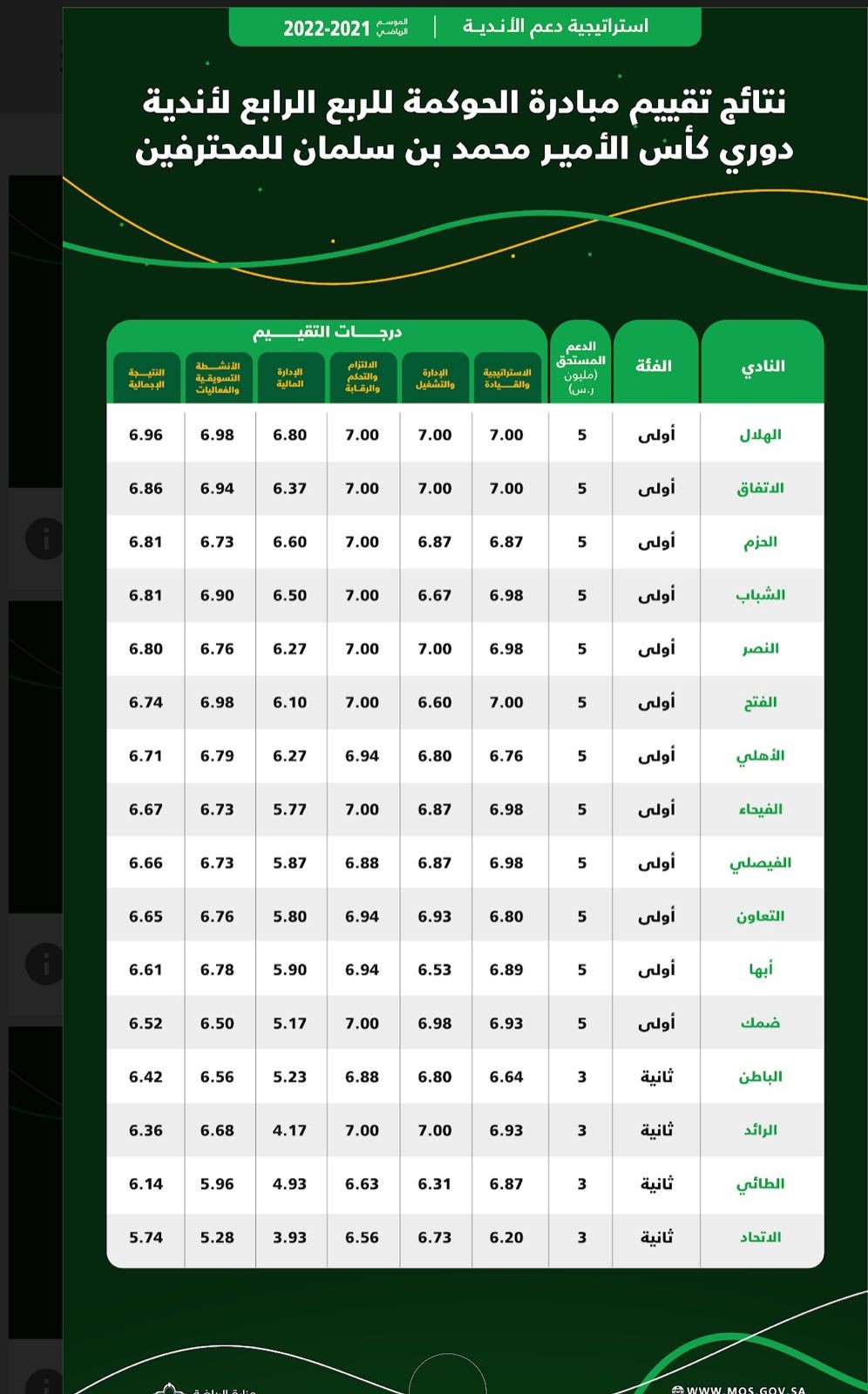 وزارة الرياضة تعلن نتائج تقييم الحوكمة للربع الرابع للأندية الرياضية (المحترفين – يلو – الدرجة الثانية)، وتعلن أيضا عن النتائج النهائية لمبادرة التحول الرقمي لأندية دوري المحترفين
