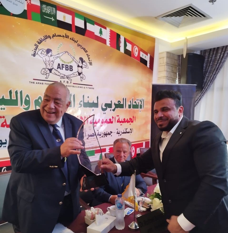 كرم الاتحاد السعودي لكمال الأجسام ، رفائيل سانتونجا رئيس الاتحاد الدولي للعبة على هامش الجمعية العمومية التي أقيمت في مصر  .