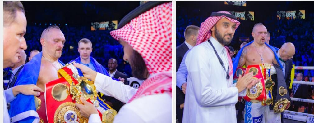 توّج سمو وزير الرياضة الأمير عبدالعزيز بن تركي الفيصل الأوكراني أولكسندر أوسيك بلقب بطل العـالم للوزن الثقيـل للملاكمة، عقب فوزه على منافسـة البريطاني أنتوني جوشوا بقرار حكمين من ثلاثة، في لقاء "نزال البحر الأحمـر"، الذي أقيم في مدينة جدة صباح اليوم الأحد، بحضـور أكثر من 10 آلاف متفرج في الصالة الرياضية بمدينة الملك عبدالله بجدة، وشـاهده الملايين حول العالم، عبر القنوات الناقلة.