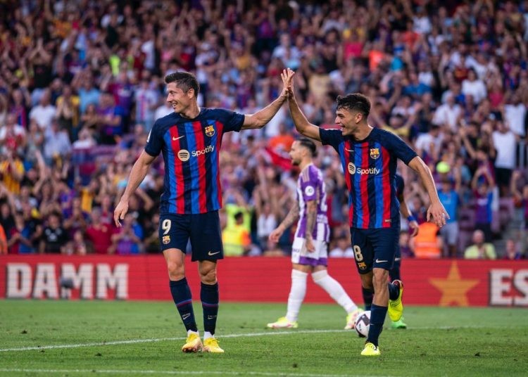 وسجل ليفاندوفسكي الهدف الأول عند الدقيقة 24 من تسديدة بعد عرضية من رافينيا، قبل أن يبعد الحارس جوردي ماسيب كرة من ديمبلي، وسجل بيدري الهدف الثاني عند الدقيقة 43، لينتهي الشوط الأول بتقدم برشلونة ضد بلد الوليد.