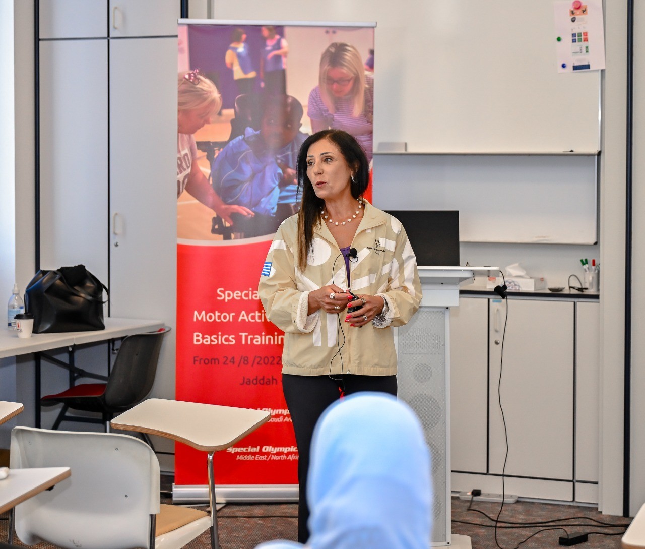 وكان مركز العون بمدينه جدة السعودية وعلى مدى ثلاثة أيام قد شهد عقد الدورة الدولية والتي تناولت شقين نظري وعملي وتطبيقي ، وحرص عبد الرحمن القريشي المدير الوطني للأولمبياد الخاص السعودي في افتتاح الدورة على الترحيب بالخبيرة الدولية، وبرئيس ونائب رئيس اللجنة الفنية للرئاسة الإقليمية، وبالمدربين المشاركين في الدورة والذين مثلوا مختلف مناطق المملكة مؤكدا على أهمية إقامة تلك الدورة من ضمن خطة الدورات التدريبية لعام 2022 والتي تهدف الى بناء قاعدة من المدربين المؤهلين علميا في مختلف رياضات الاولمبياد الخاص.، حيث شارك في هذه الدورة 40 مدربا من أحد عشر منطقة و مدينة من المملكة و هي الدمام ، الاحساء ، الرس ، الرياض ، المدينة ، الجوف ، جدة ، مكة ، ينبع ، أبها، الباحة .