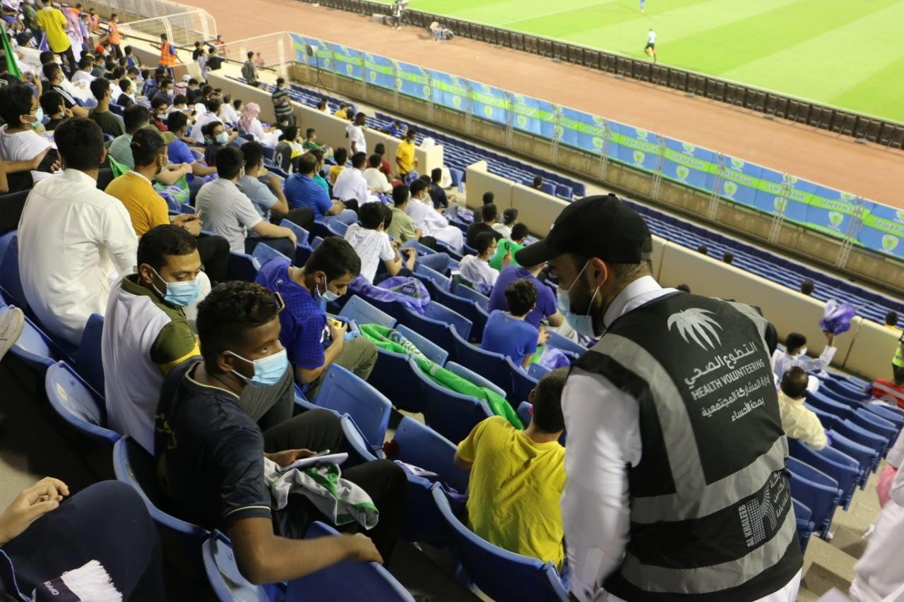 قامت إدارة التوعية الصحية وتعزيز الصحة بتجمع الأحساء الصحي يوم الثلاثاء 25 مايو 2021 بجولة توعوية لمتابعة مدى الالتزام بالاحترازات الوقائية بفيروس كورونا المستجد، وذلك خلال مباراة نادي الفتح والقادسية في مدينة الأمير عبدالله بن جلوي الرياضية.