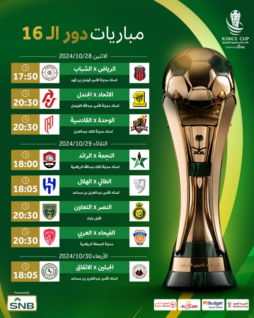 كشف الاتحاد السعودي لكرة القدم عن موعد مباريات دور الـ 16 من بطولة كأس خادم الحرمين الشريفين للموسم 2024-2025.