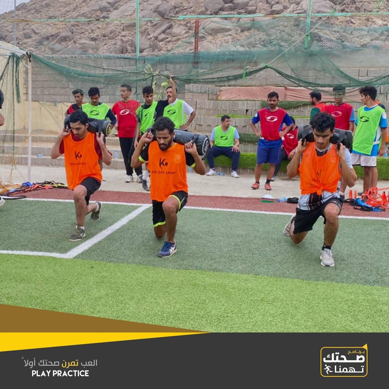 واصل مشتركو البرنامج الرياضي  ( صحتك تهمنا ) بمحافظة المخواة تدريباتهم لليوم الثالث وسط حضور مميز وبدأ البرنامج بكلمة توعوية للمشرف الرياضي صالح حسن الغامدي عن أهمية النوم المبكر وتناول الفواكه والخضروات وكذلك الأكثار من شرب الماء في هذه الأيام طوال اليوم كامل وتلا ذلك الإحماء لجميع المشتركين والدخول على تمارين القوة واللياقة البدنية لينتهي التمرين بمناورة خفيفة لكرة القدم والجري الخفيف على الملعب ومن ثم تمارين الإطالة على أن يعاودو غدآ برنامجهم لليوم الرابع وسط معنويات عالية وترقب لما هو جديد.