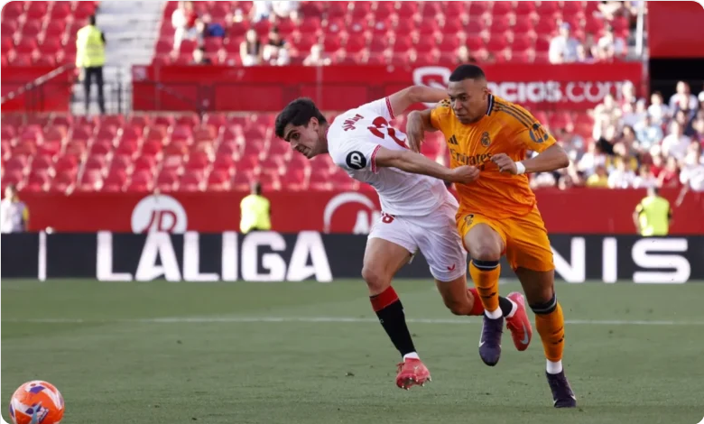 سجل كيليان مبابي وجود بلينجهام هدفين متأخرين في الشوط الثاني قادا بهما ريال مدريد للفوز 2-صفر اليوم الأحد على مضيفه اشبيلية ضمن دوري الدرجة الأولى الإسباني لكرة القدم، وأنهى اشبيلية المباراة بتسعة لاعبين بعد حالتي طرد مباشرين للاعبين لويك بادي وإيساك روميرو.