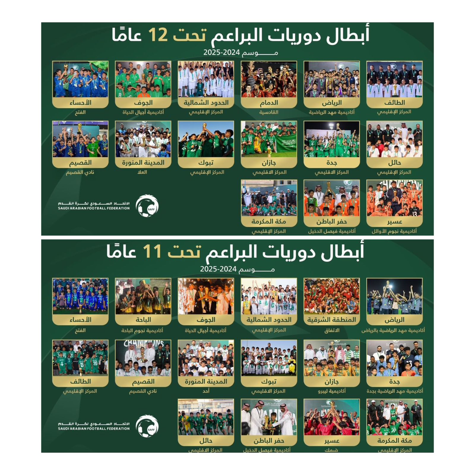 اختتمت إدارة البراعم في الاتحاد السعودي لكرة القدم الموسم الثاني من دوري البراعم تحت 12 عامًا، والموسم الأول من دوري البراعم تحت 11 عامًا، وسط مشاركة واسعة من الأندية والأكاديميات والأندية الخاصة ومراكز التدريب.