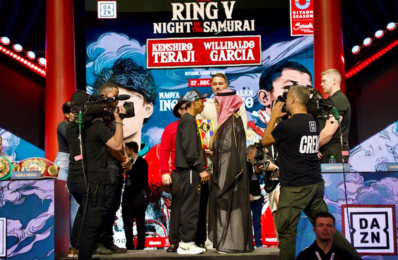 وشهد المؤتمر أيضاً حضوراً لافتاً لبطل اليابان "كينشيرو تيراجي"، الذي خطف الأنظار بظهوره مرتدياً الزي السعودي في لفتة تقديرية للاستضافة، قبل أن يؤكد في تصريح مباشر أنه ممتن لخوض نزال بهذا الحجم، وأنه "سيفوز بالتأكيد" لأنه يرى هذه المواجهة خطوة يجب أن ينتصر فيها ليفتح الباب للمرحلة التالية. وفي فقرة سؤال وجواب حول مواجهة مستقبلية أمام جيسي رودريغيز، أوضح تيراجي أن رودريغيز خصم لطالما أراد مواجهته، وأنه يسعى للفوز أولاً هنا في الرياض "والإمساك بالفرصة بقوة" للوصول إلى تلك المواجهة.
