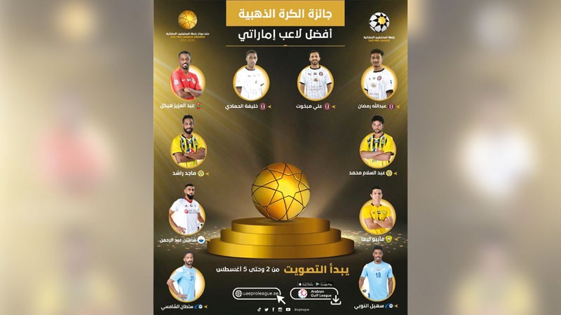 وقالت الرابطة في بيان صحافي إن 10 نجوم يتنافسون على جائزة الكرة الذهبية (أفضل لاعب إماراتي)، كل من: عبدالله رمضان وعلي مبخوت وخليفة الحمادي (الجزيرة)، عبدالعزيز هيكل (شباب الأهلي)، عبدالسلام محمد وماجد راشد (اتحاد كلباء)، فابيو ليما (الوصل)، سهيل النوبي وسلطان الشامسي (بني ياس)، وشاهين عبدالرحمن (الشارقة).