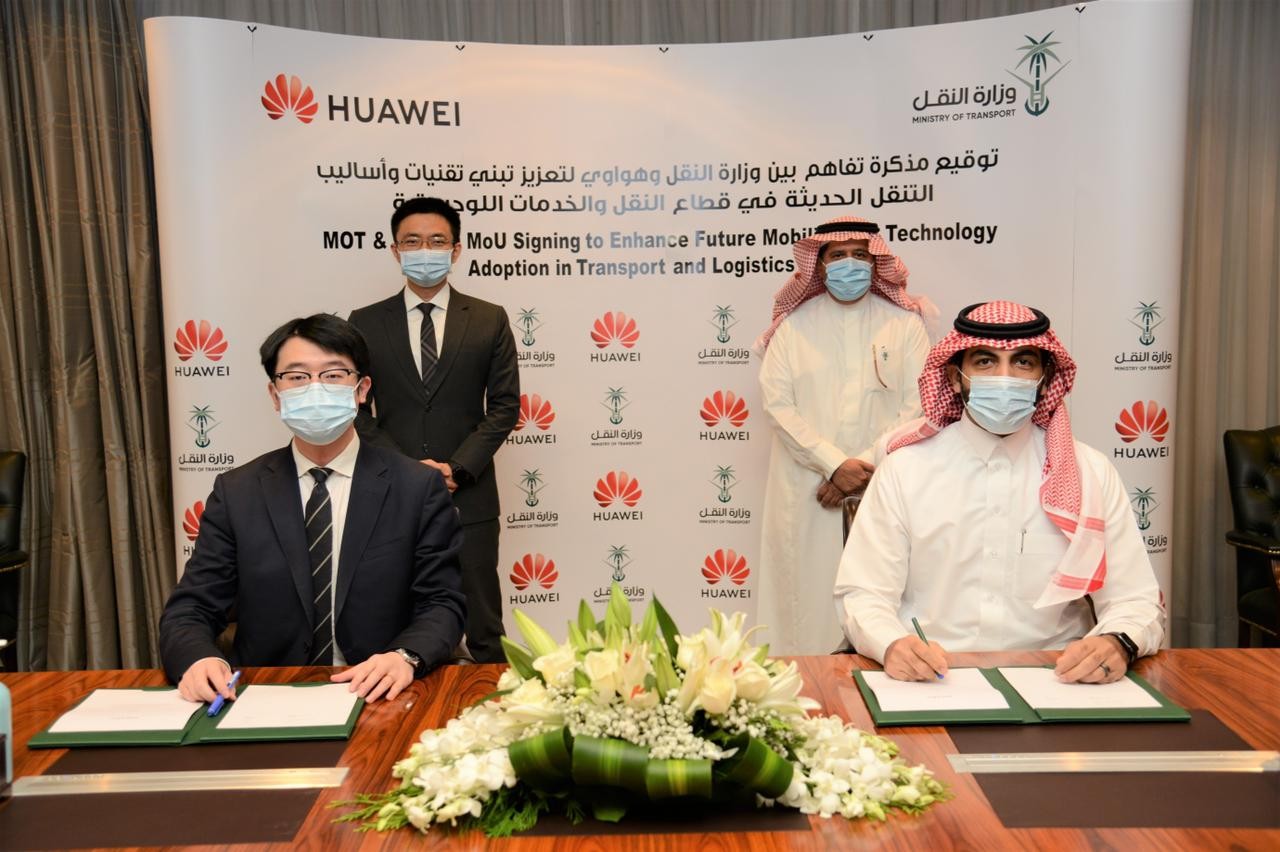 وقعت وزارة النقل مع شركة هواوي مذكرة تفاهم لتعزيز تبني تقنيات وأساليب التنقل الحديثة في قطاع النقل والخدمات اللوجستية، وذلك لبحث فرص استخدام تقنيات متقدمة مثل الجيل الخامس والذكاء الاصطناعي والبيانات الضخمة في مجال النقل والخدمات اللوجستية، وتعد هواوي أحد الشركة العالمية الرائدة في مجال توفير البنية التحتية لتقنية المعلومات والاتصالات والأجهزة الذكية.