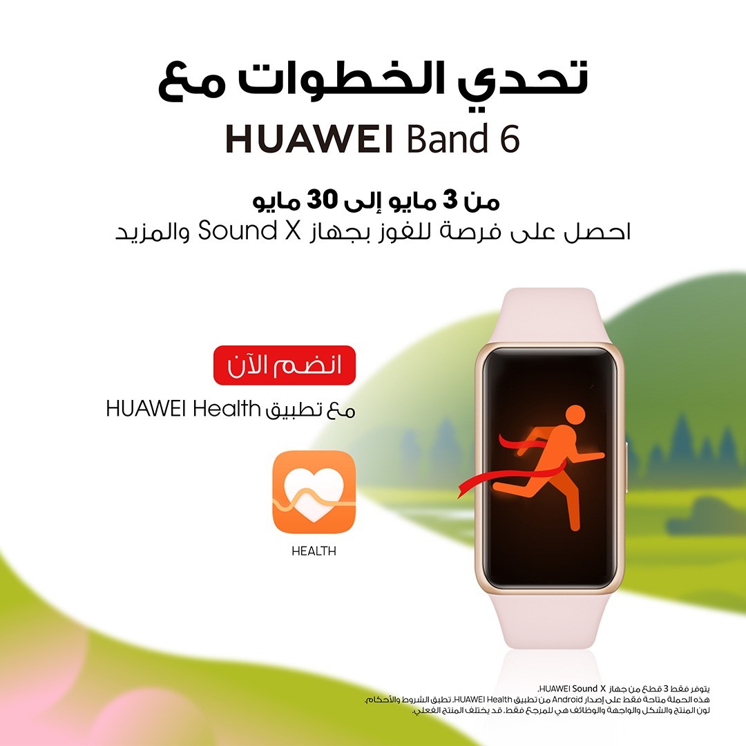 أعلنت شركة هواوي تك انفستمنت العربية السعودية عن تحدٍ جديد كليًا للياقة البدنية لمستخدميها في المملكة العربية السعودية بدءًا من 3 مايو وحتى 30 مايو، حيث يمكنهم الانضمام والمنافسة للفوز بسوار HUAWEI Band 6 الجديد و ايضاً المنافسة للدخول في فرصة الفوز بميداليات إلكترونية ، وجوائز مثلSound X ، FreeBuds 3 و Watch GT والمزيد من الجوائز المثيرة. التحدي، المسمى HUAWEI Band 6 Steps Challenge ، سيطلب من المشاركين استخدام تطبيق HUAWEI Health الذي يأتي مثبتًا مسبقًا في هواتف Huawei الذكية أو يمكن تنزيله بواسطة الهواتف الذكية من العلامات التجارية الأخرى ، للانضمام والمشاركة. سيكون التحدي متاحًا أيضًا على تطبيق Steppi.