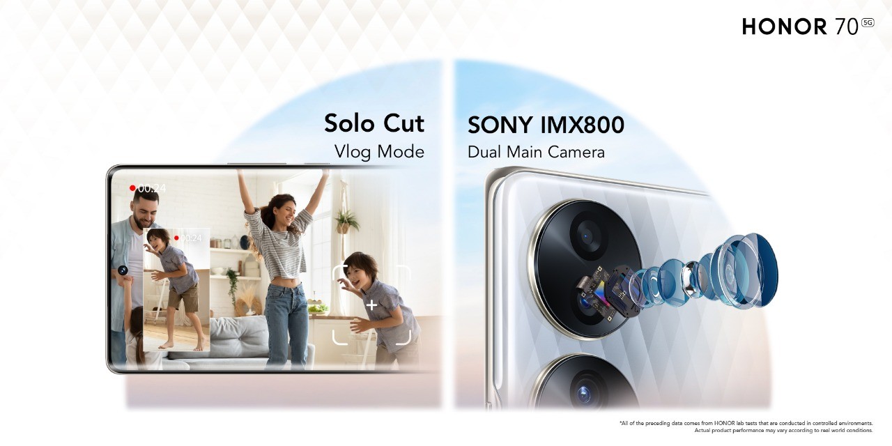 مع الأخذ بذلك في الاعتبار، وبهدف إلهام منشئي المحتوى لإطلاق العنان لإبداعهم وتقديم المزيد من السهولة والراحة لهم أثناء تصوير مدونات الفيديو الخاصة بهم، قدمت HONOR أفضل هاتف لتصوير الـ Vlog وهو هاتف HONOR 70. يأتي هاتف HONOR 70 مع وضع الـ Solo Cut لتصوير الـ Vlog الأول في المجال. يقدم الوضع الجديد ابتكارات غير مسبوقة في مجال التصوير بالفيديو لتمكين الجميع من تحقيق تطلعاتهم الإبداعية في إنشاء مدونات فيديو أيقونية. يُمكّن وضع الـ Solo Cut لتصوير الـ Vlog المستخدمين من إنتاج مدونات فيديو عمودية تسلط الضوء على شخص معين في فيديو جماعي باستخدام خوارزمية التتبع التلقائي الشخص بالذكاء الاصطناعي.