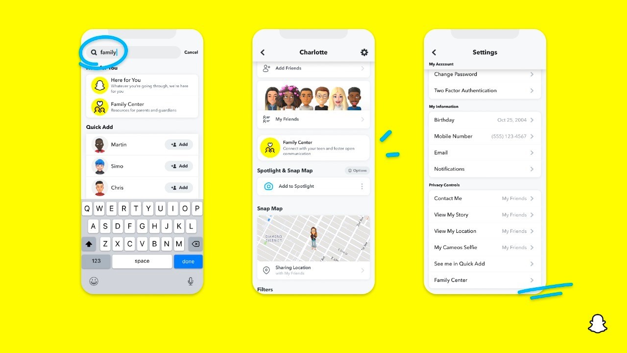 وكشفت شركة سناب شات عن خصائص أمان موسعة لميزة "مركز العائلة"، والتي تمنح الآباء رؤية أكثر شمولاً لنشاط أبنائهم المراهقين على المنصة، وتمكنهم من إجراء نقاشات بناءة حول مفاهيم السلامة والاستخدام الرقمي الآمن. وتعتزم سناب شات في هذا الصدد طرح عدد من المزايا الجديدة خلال الأسابيع القليلة القادمة: